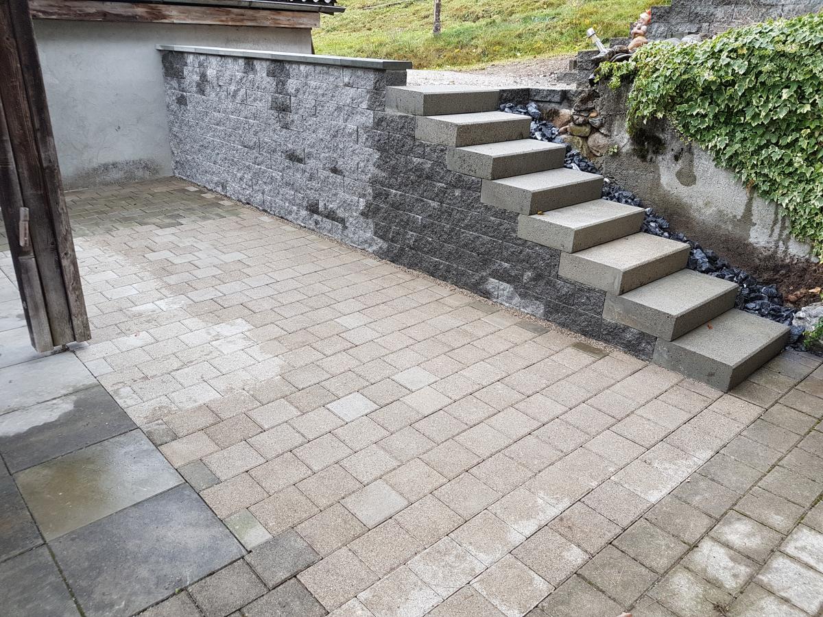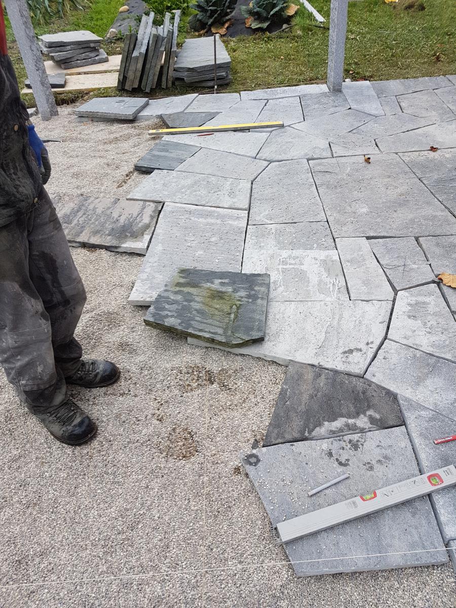 • Wege und Plätze aus Natur- und Betonsteinen oder Kies