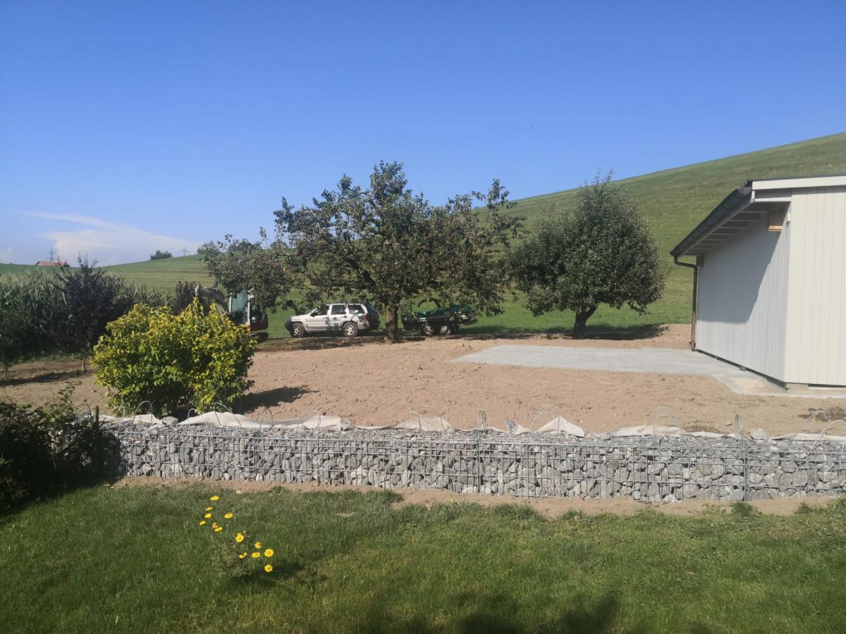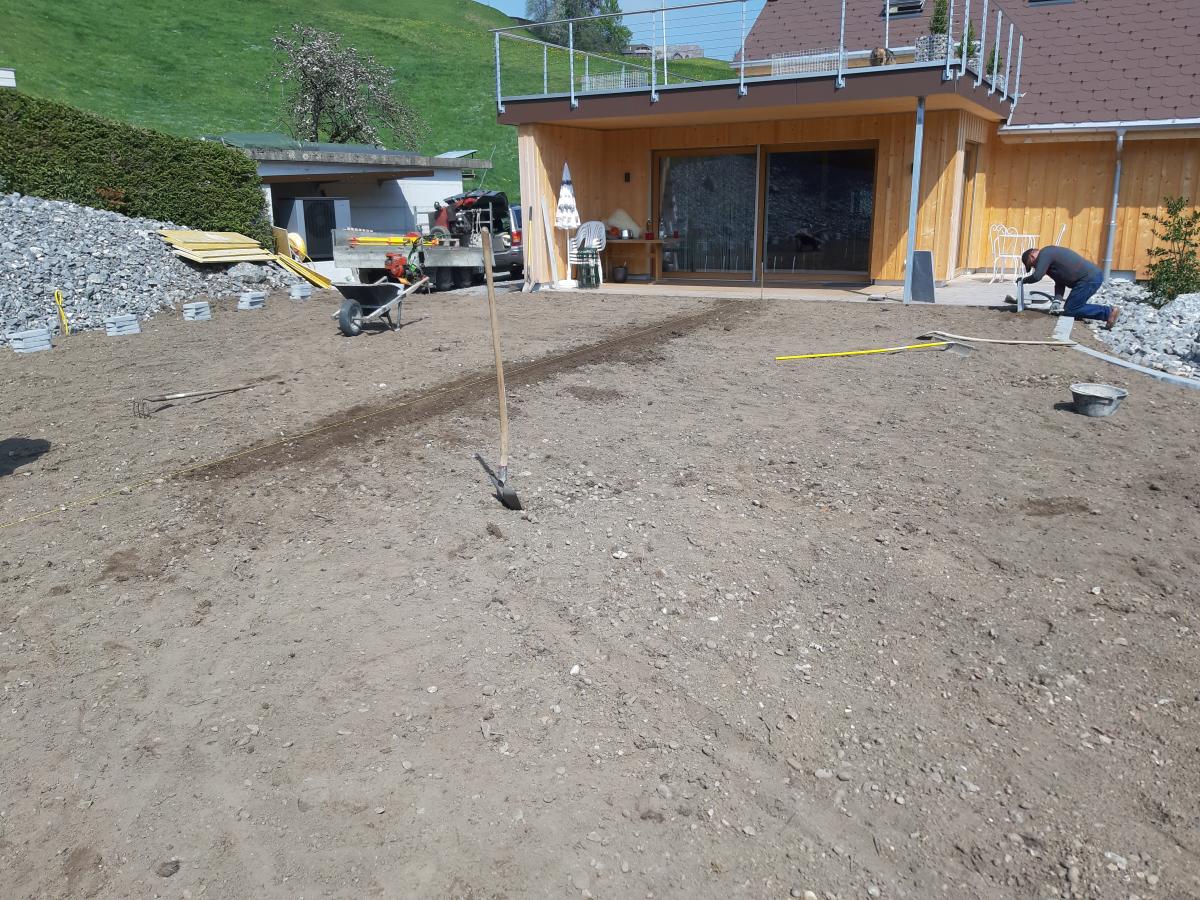 • Verlegen von Leerleitungen für den Stromer oder Sanitär (Bei Erdwärme nur die Gräbe öffnen, Leitungen schützen mit geeignetem Material und schliessen)